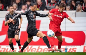 主队(弗赖堡)以 37 分位居德甲第 8...